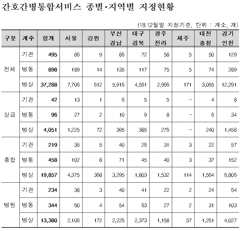 '18년 12월말 기준, 전국 495개 병원 3만7000여개 병상서 서비스 제공