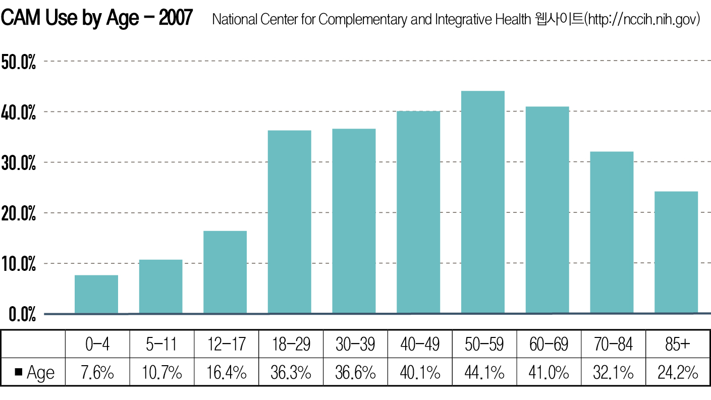 CAM(보완대체의학)을 이용하는 환자 비율이 늘어나면서 기존의 의료건강서비스 제공자들은 더욱 통합적이고 결과중심적인 건강관리 서비스 체계로 이동하려는 움직임을 보이고 있는 것이다.