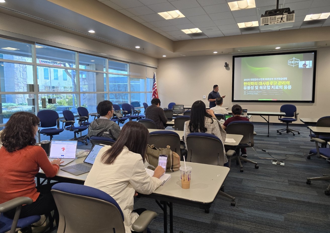 [한의신문] 대한한의사협회 미주지부(AAKM)가 주최한 2025년 봄 정기 학술대회가 5일부터 6일까지 이틀간 미국 캘리포니아 얼바인에서 성공적으로 개최됐다. 이번 학술대회는 Zoom을 활용한 온라인 웨비나와 현장 강의를 병행하는 하이브리드 방식으로 진행됐으며, 총 50명 이상이 참석해 뜨거운 관심을 나타냈다.