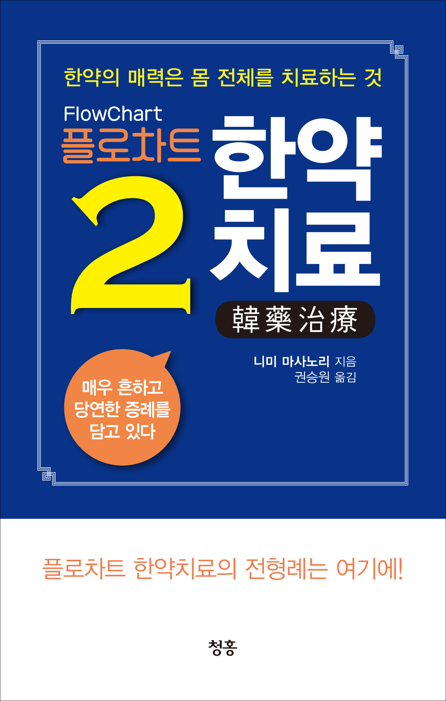 플로차트 한약치료2 일상적인 상황에 바로 적용 가능한 처방 '플로차트 한약치료'의 속편이 간행됐다. 플로차트 1권에서 이 같은 처방을 제시한 저자 니미 마사노리는 이번에 간행된 2권을 통해 다양한 증례를 제시했다. 양의학적 처치가 이뤄지지 않아서 내원한 상황이 주를 이룬다. 일본동양의학회 전 회장인 마쓰다 구니오는 추천의 글에서 "최근 한방 관련 해설서는 처방의 사용방법 같은 임상응용법이 많이 실려 있지만, 처방을 구성하는 약재의 작용 같은 기초까지는 해설하고 있지 않은 경우가 많다"며 "바쁜 임상의가들은 약재 공부 같은 것에 흥미가 없을 수도 있겠으나, 약재의 작용을 앎으로써 한방처방을 보다 잘 사용할 수 있게 된다. 니미 선생의 책이 항상 그렇듯 읽기 편한 훌륭한 책으로 실제 임상에서 큰 역할을 하리라 믿는다"고 밝혔다. 저자인 니미 마사노리는 게이오기주쿠대학 의학부를 졸업한 후 혈관외과, 이식면역학, 동양의학, 노동위생 컨설트 등의 영역에서 활동해 왔다. 역자인 권승원 경희대 한방병원 순환신경내과 교수는 대한스포츠한의학회 팀닥터, 경희대학교 한의약융합연구정보센터 Information Provider 등을 역임했다. ● 목차 추천의 말 시작하며 Ⅰ장 프롤로그 한약의 위치 한방엑기스제의 보험병명에 대해 한약 15분류 차트 한 가지 약재만으로도 처방의 방향성을 알 수 있다 몸을 따뜻하게 하는 약재와 식히는 약재 II장 전형증례집 ●호흡기 감기 예방 보중익기탕 감기 예방 소시호탕 독감 예방 보중익기탕 독감에 걸렸다면 마황탕 감기 걸린 듯 목이 까끌까끌 마황부자세신탕 감기 걸린 듯 콧물 소청룡탕 감기 걸린 듯 배로 왔다! 오령산 감기 튼튼한 타입 마황탕 감기 약간 튼튼한 타입 갈근탕 감기 약간 약한 타입 마황부자세신탕 감기 약한 타입 향소산 기침 마행감석탕 장기화 된 기침 마행감석탕+소시호탕 마른기침 맥문동탕 완고한 기침 마행감석탕+맥문동탕 기관지확장증 청폐탕 COPD 보중익기탕/인삼양영탕 천식 마행감석탕+소시호탕 천식 보중익기탕/십전대보탕 천식 시박탕 ●소화기 변비 윤장탕/마자인환 변비 계지가작약대황탕 변비 대황감초탕 변비 도핵승기탕 변비 대승기탕 대황을 복용하면 복통 가미소요산 장폐색 유사 증상 대건중탕 소아 변비 소시호탕 만성 설사 진무탕 만성 설사 인삼탕 만성 설사 진무탕+인삼탕 만성 설사 대건중탕 고급 위장약 반하사심탕 고급 위장약 안중산 고급 위장약 인삼탕 과민성 대장증후군(IBS) 계지가작약탕 치질 을자탕 치질 계지복령환 반복되는 장폐색 대건중탕 반복되는 장폐색 중건중탕 구내염 길경탕 구내염 반하사심탕 구내염 황련해독탕 간염 인진오령산+보중익기탕 간염 인진호탕+소시호탕 ●순환기 고혈압 황련해독탕 고혈압 시호가용골모려탕 기립성 저혈압 반하백출천마탕 기립성 저혈압 진무탕 두근거림 자감초탕 두근거림 시호가용골모려탕 두근거림 가미소요산 두근거림 시박탕 ●비뇨기 빈뇨 팔미지황환 빈뇨 용담사간탕/오림산 빈뇨 청심연자음 방광염 저령탕 방광염 저령탕합사물탕 요관 결석 작약감초탕+저령탕 발기부전 우차신기환 발기부전 시호가용골모려탕 발기부전 계지가용골모려탕 ●정신신경계 수면장애 가미귀비탕/귀비탕 수면장애 억간산 수면장애 황련해독탕/삼황사심탕 수면장애 시호계지건강탕 편두통 오수유탕 편두통 오령산 두통 갈근탕 고령자 두통 조등산 소아 두통 오령산 생리 시 두통 당귀작약산 삼차신경통 오령산 늑간신경통 당귀탕 당뇨병성 신경장애 우차신기환 치매 억간산 악몽 계지가용골모려탕 우울증 보중익기탕 우울증 향소산 우울증 육군자탕 우울증 가미귀비탕 ●운동기질환 정형외과적 진통제-건강한 사람에게 월비가출탕 정형외과적 진통제-마황을 쓸 수 없는 사람에게 계지가출부탕 정형외과적 진통제-체력도 증진시키고 싶다 대방풍탕 요부염좌 작약감초탕+소경활혈탕 좌골신경통 우차신기환 간헐성 파행 당귀사역가오수유생강탕 만성 요통 소경활혈탕 변형성 슬관절염 방기황기탕+월비가출탕 채찍질손상 갈근가출부탕 타박/염좌 계지복령환 타박/염좌 통도산 타박/염좌 치타박일방 ●부인과 갱년기장애 유사증상 가미소요산 갱년기장애 유사증상 여신산 갱년기장애 유사증상 억간산 갱년기장애 유사증상 시호가용골모려탕 부인과질환 일반-매우 튼튼 도핵승기탕 부인과질환 일반-튼튼 계지복령환 부인과질환 일반-약한 타입 당귀작약산 월경 전 긴장증후군 억간산 월경 전 긴장증후군 가미소요산 월경 전 긴장증후군 도핵승기탕 월경량이 많음 궁귀교애탕 생리 출산 임신으로 악화 당귀작약산 임신 시 감기 계지탕 임신 시 기침 맥문동탕 입덧 소반하가복령탕 유방통 당귀작약산/온경탕 불임 당귀작약산 ●이비인후과 꽃가루 알레르기 소청룡탕 꽃가루 알레르기 월비가출탕 꽃가루 알레르기 영감강미신하인탕 어지럼 영계출감탕 어지럼 반하백출천마탕 어지럼 진무탕 소아 어지럼 오령산 고령자 어지럼 조등산 부인의 어지럼 당귀작약산 축농증 갈근탕가천궁신이 축농증 신이청폐탕 편도염 소시호탕가길경석고 코피 황련해독탕 ●안과 알레르기성 결막염