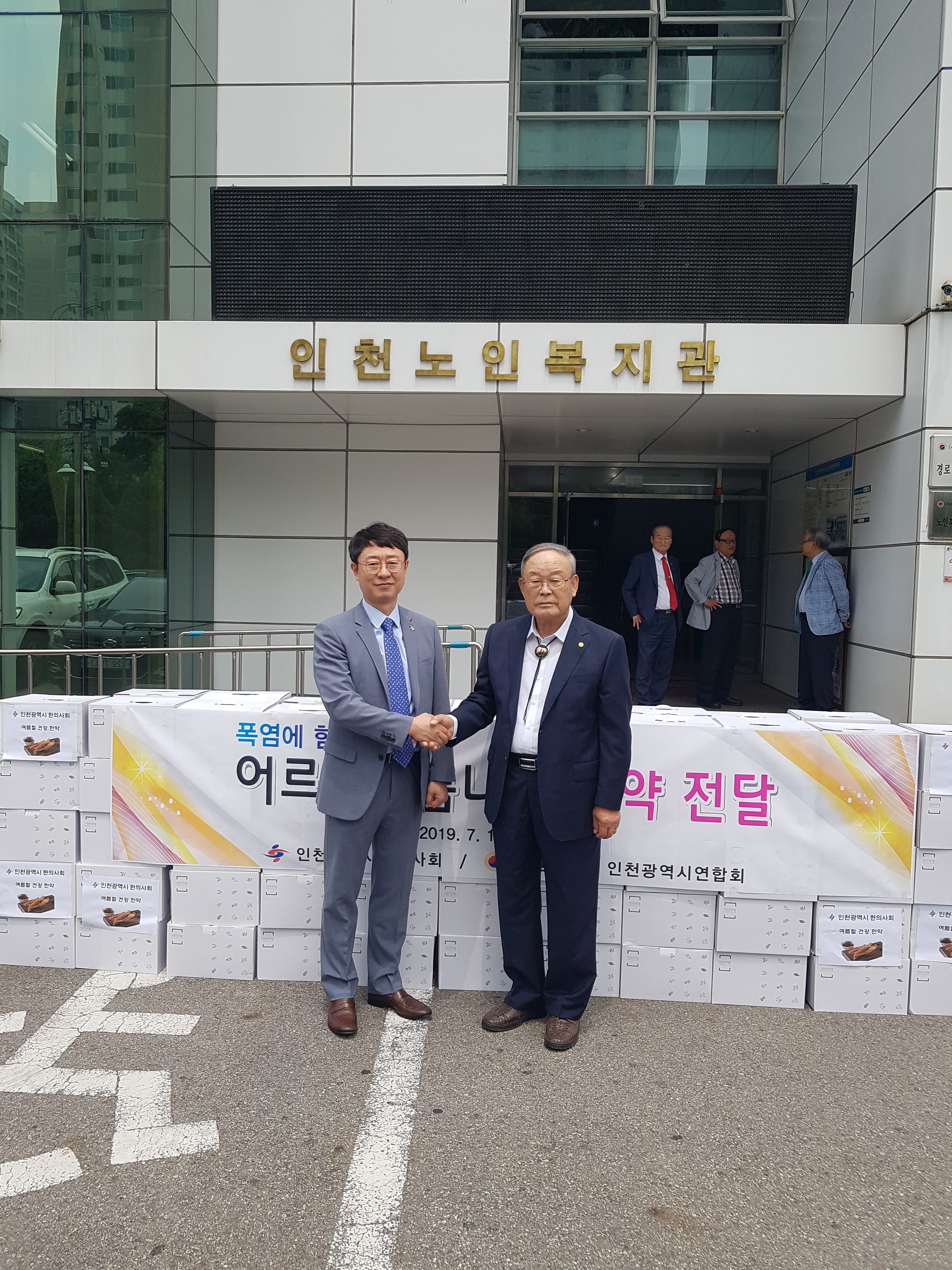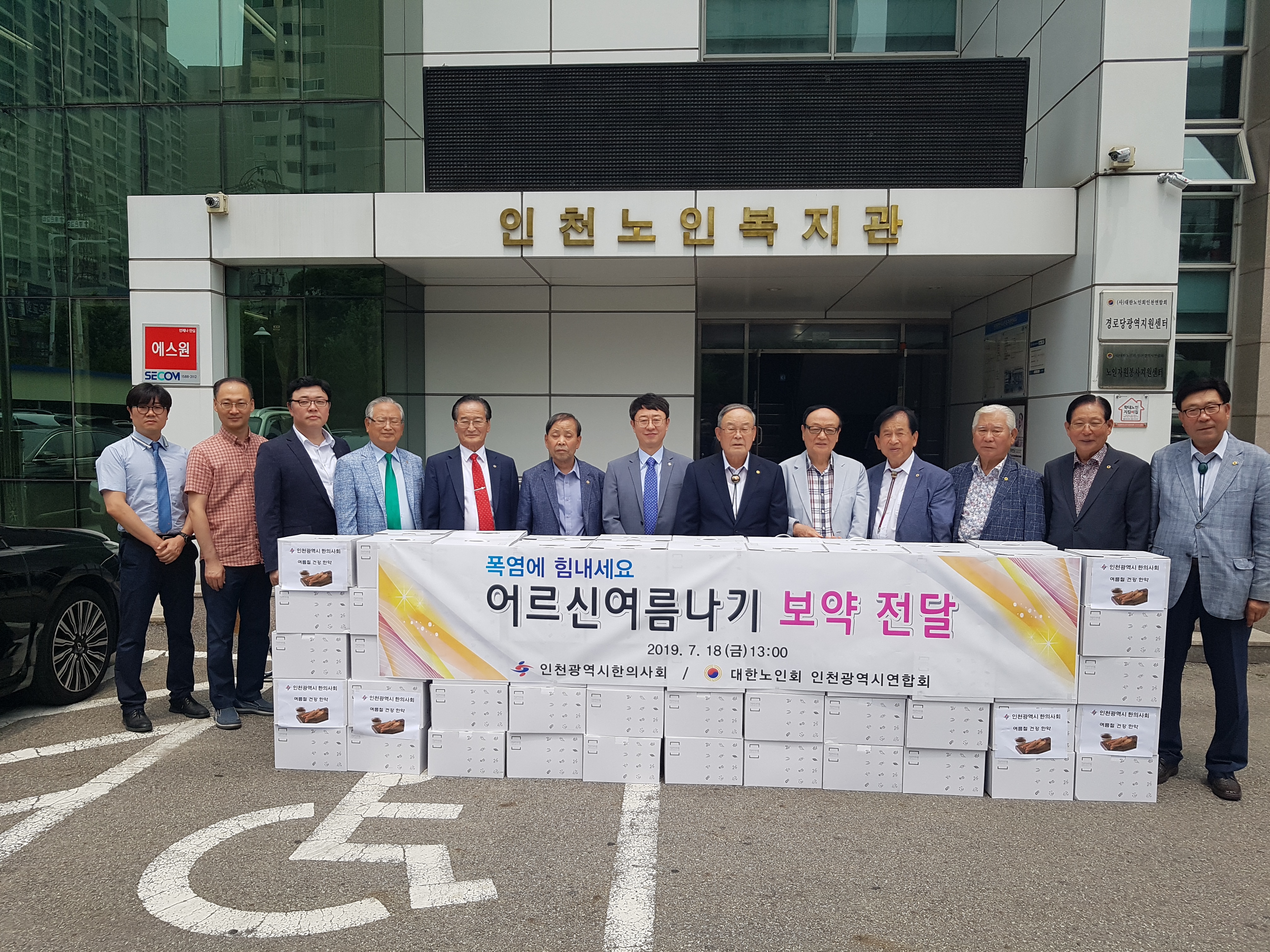 [한의신문=강환웅 기자] 인천광역시한의사회(회장 황병천)는 18일 대한노인회 인천광역시연합회(회장 박용렬) 인천노인복지관을 방문, 지난해에 이어 여름철을 맞아 어르신들의 건강 증진에 도움이 될 건강한약 100박스를 전달했다.