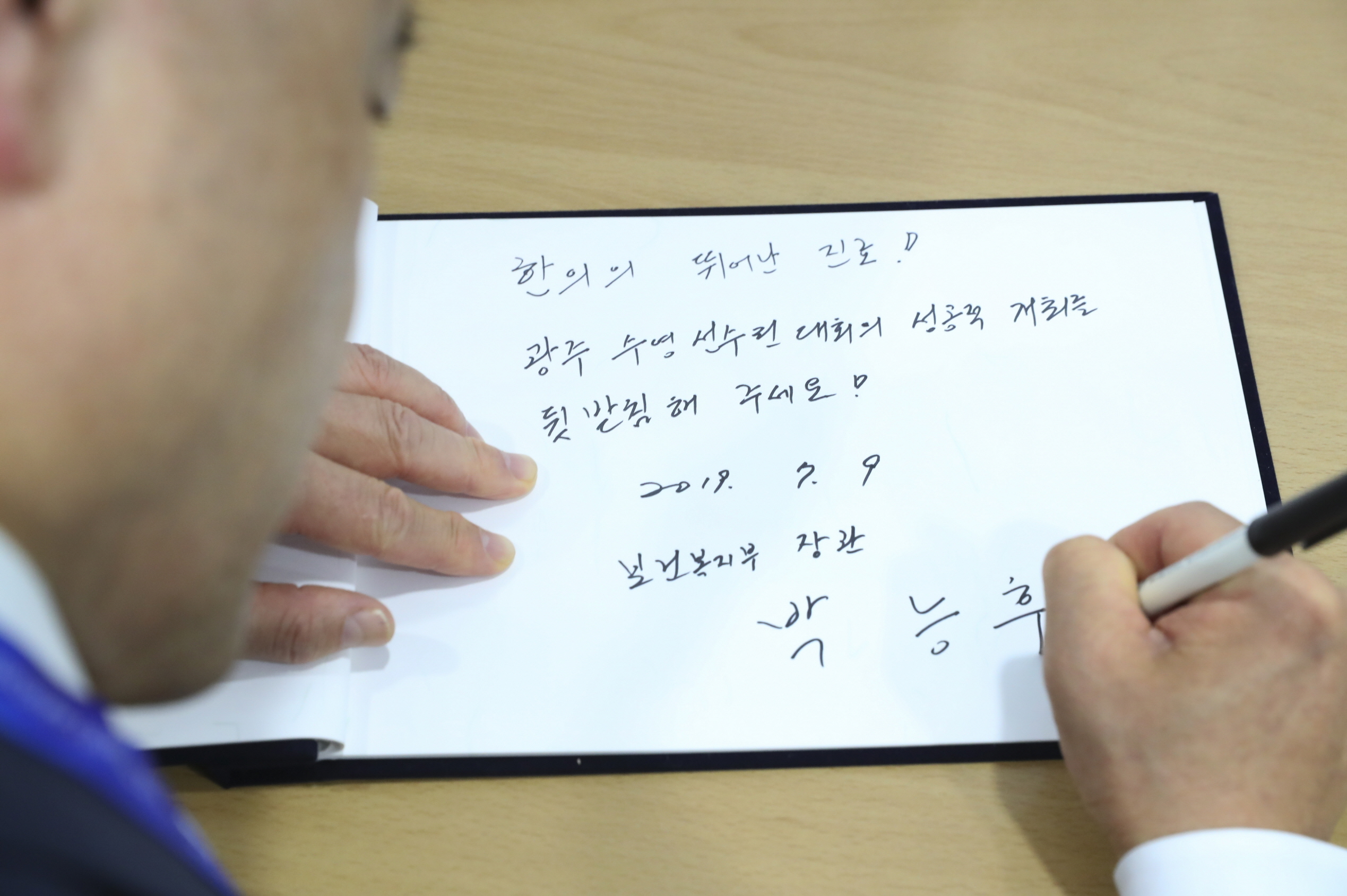 박능후 장관 광주세계수영선수권대회 한의진료실 방문