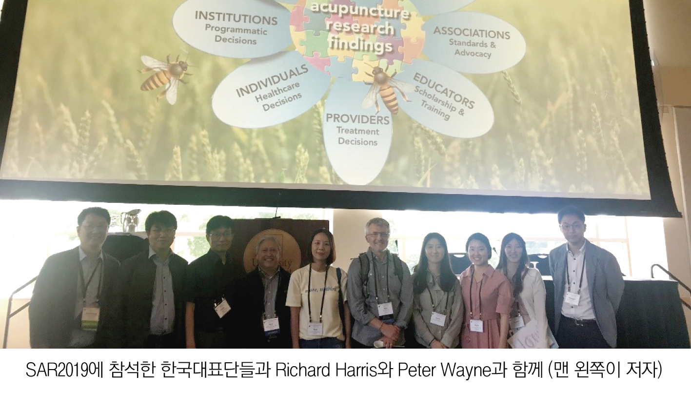 SAR에서는 올해부터 세계 각국에서 참가한 대표단 중에 1명씩 Ambassador를 위촉, 세계 각국의 침 연구, 진료 현황 등의 정보를 교류한다. 개인적으로 영광스럽게 한국대표로 위촉되어 2년간 활동을 하게 되었다. 2007년 볼티모어, 2010년 채플힐, 2014년 베이징, 2015년 보스턴, 2017년 샌프란시스코, 2019년 벌링턴, 이렇게 6번의 SAR학회를 참가하면서, 침 연구에서 한계점으로 생각되어 왔던 것을 풀어 나갈 수 있는 힌트를 얻을 수 있었고, 지나온 10여년 동안 처음에는 낯설고 서툴었던 나의 모습에서 점차 익숙해지고, 친구와 같은 편해지는 느낌을 받는다.