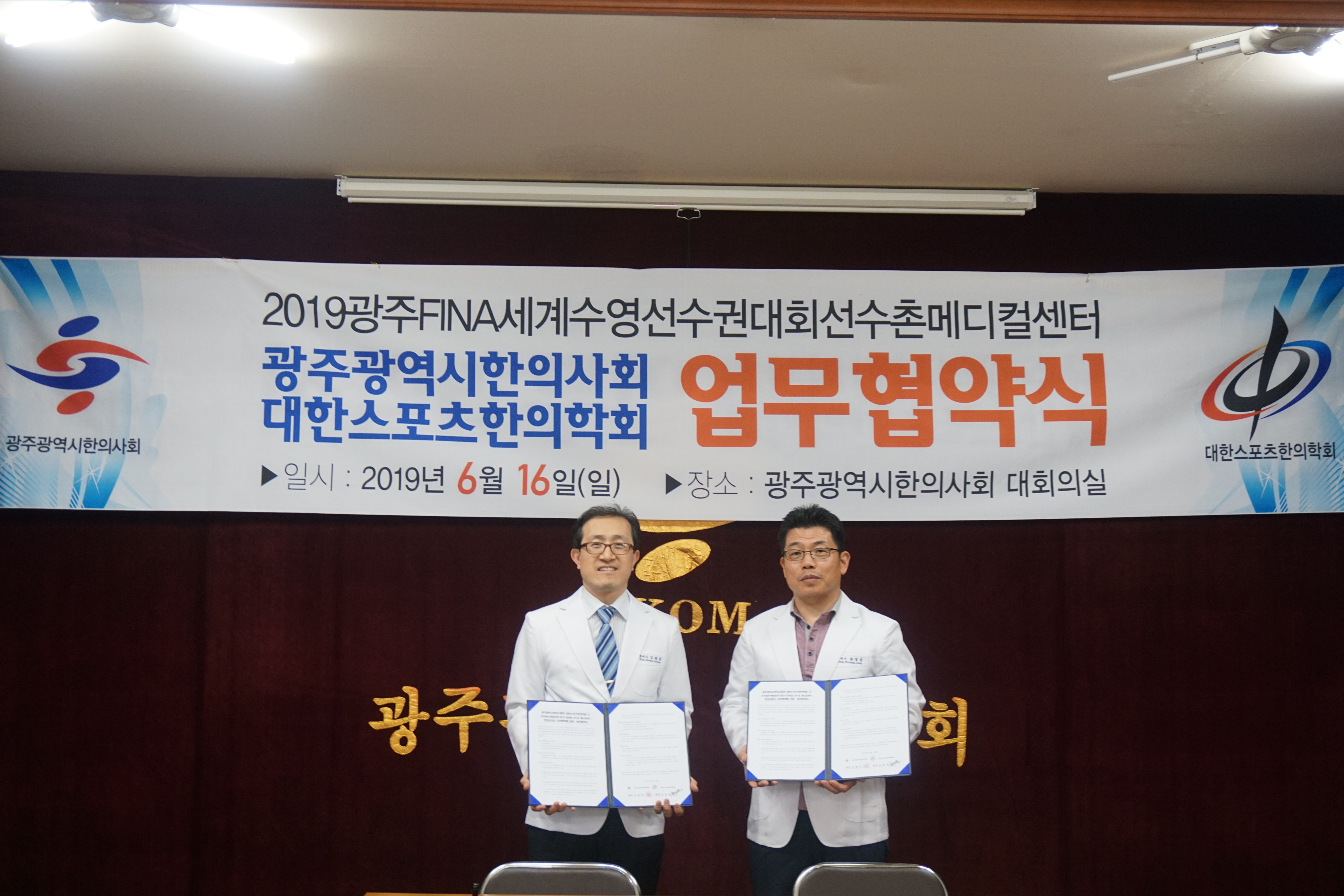 광주지부는 지난 16일 지부회관 3층 대강당에서 대한스포츠한의학회와 ‘2019 광주FINA세계수영선수권대회 선수촌 메디컬센터 한의진료를 위한 업무협약식’을 체결했다고 밝혔다.