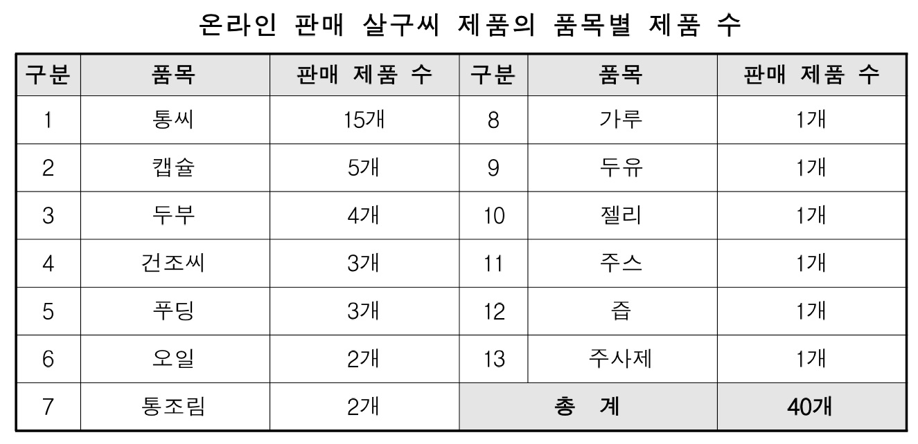 살구씨는 식품 원료로의 사용이 금지돼 있으나 네이버 쇼핑에서 ‘살구씨’ 혹은 ‘행인’(杏仁) 등으로 검색한 결과, 12개 품목 39개 제품이 살구씨 식품으로 판매되고 있었다. 39개 제품을 살펴보면 섭취가 간편한 ‘통씨’가 15개 (38.5%)로 가장 많았고 ‘캡슐’ 5개(12.8%), ‘두부’ 4개(10.3%) 및 오일·젤리·통조림·즙 등 다양한 형태의 제품이 유통되고 있었다.