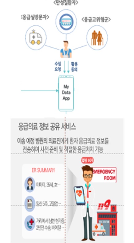응급환자 진료데이터(병명, 검사결과, 처방전 등), 스마트폰 운동 기록(걸음수, 심박수 등) 등을 스마트폰(개인 클라우드)에 저장·활용(조회)할 수 있는 서비스는 물론 응급상황 시, 119와 응급 의료진에게 환자의 응급용 의료기록 정보를 즉각 전달하고 보호자에게 환자 응급상황을 알려주는 서비스다.