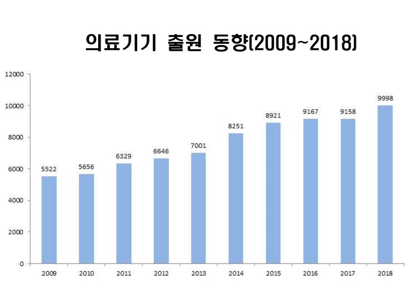 [한의신문=강환웅 기자] 특허청은 8일 정부혁신의 일환으로 산업계의 연구개발 전략 수립과 기술 발전을 지원코자 최근 10년간('09∼'18년) 의료기기 유형별 특허출원 동향을 발표했다.