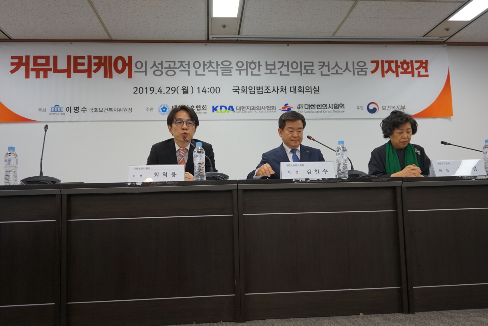 한편 이날 대한한의사협회 최혁용 회장은 “커뮤니티케어는 정말 중요하다. 제대로 진행되기 위해서는 모든 사람의 힘을 모으는 것이 성공의 척도”라며 “세 개 보건의료단체가 커뮤니티케어의 성공적인 안착을 위해 제대로 힘을 모으겠다는 생각으로 함께 모였다. 기대해 달라”고 말했다.