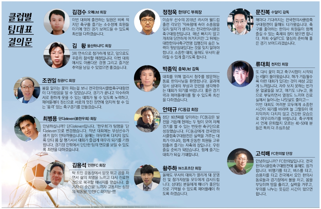 이어 ‘페어플레이’ 정신에 입각해 치러지길 바라는 각 팀 대표선수들의 출전소감을 들어보았다.