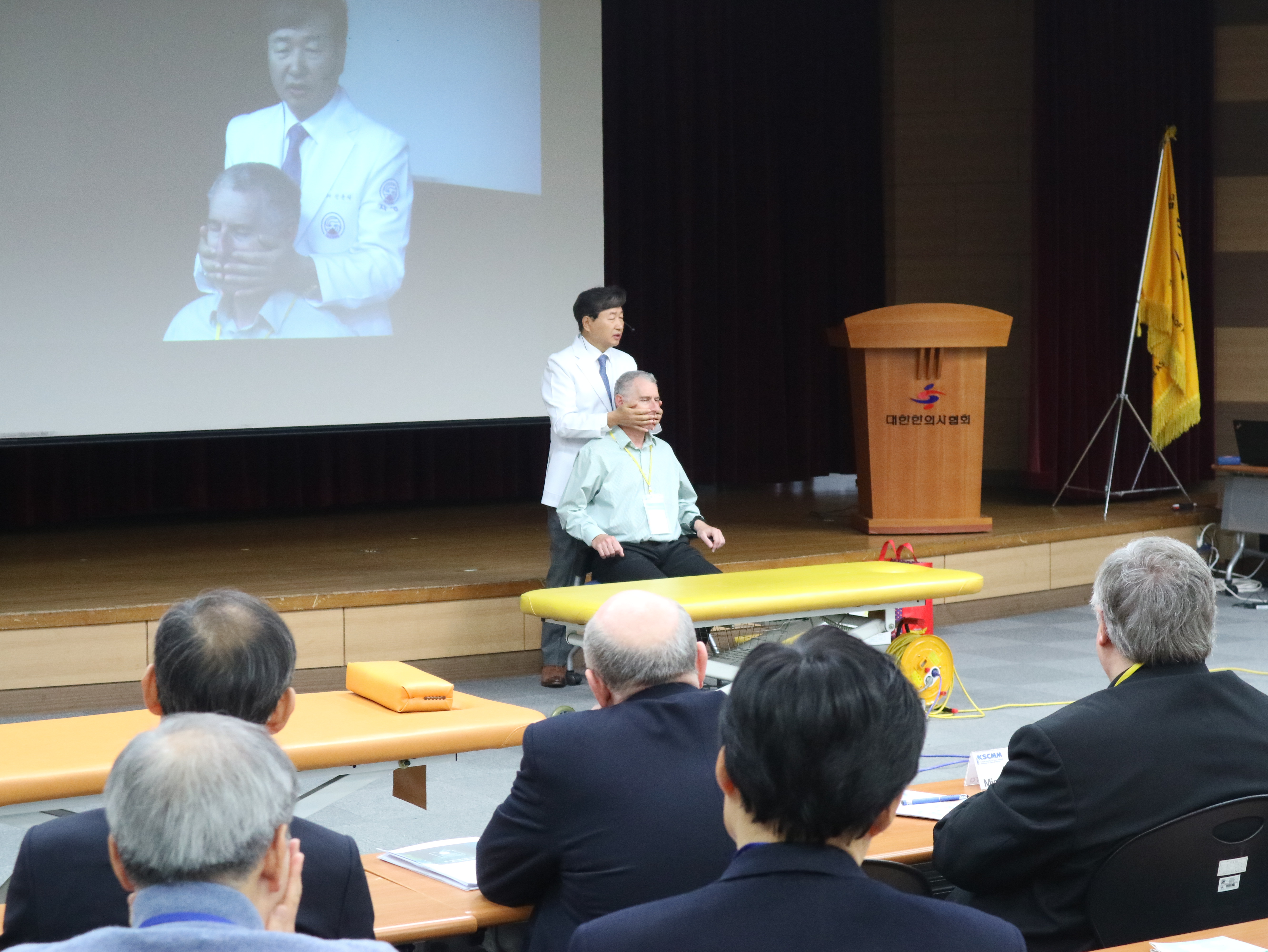 [한의신문=김대영 기자] 지난 7일 ‘2019 국제 수기근골의학 연합회(이하 FIMM) 서울 컨퍼런스’에서 척추신경추나의학회 신준식 명예회장이 추나요법인 'SJS 무저항요법'으로 말초성 안면신경마비를 효과적으로 치료하는 방법을 소개해 주목받았다.