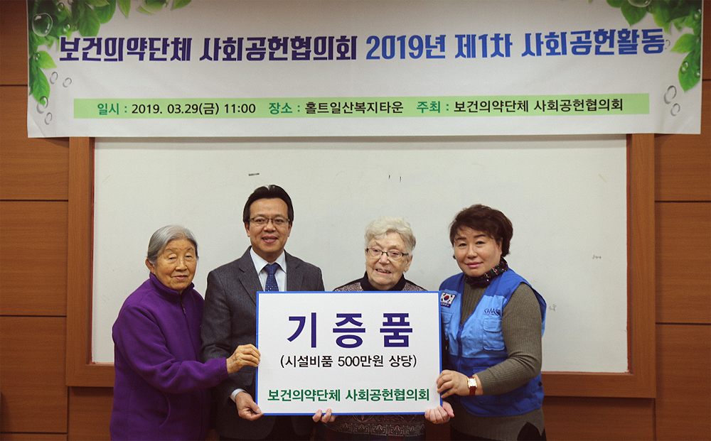 [한의신문=김태호 기자] 보건의약단체 사회공헌협의회(이하 사공협)는 지난달 29일 경기도 타현로에 위치한 홀트일산타운을 방문, 안혜선 중앙위원장, 홀트복지타운 말리 홀트 이사장, 신상문 총괄원장, 조병국 명예원장, 린다 백 홀트 등이 참석한 가운데 기증품 전달식 및 2019년 제1차 사회공헌활동을 실시했다고 밝혔다.