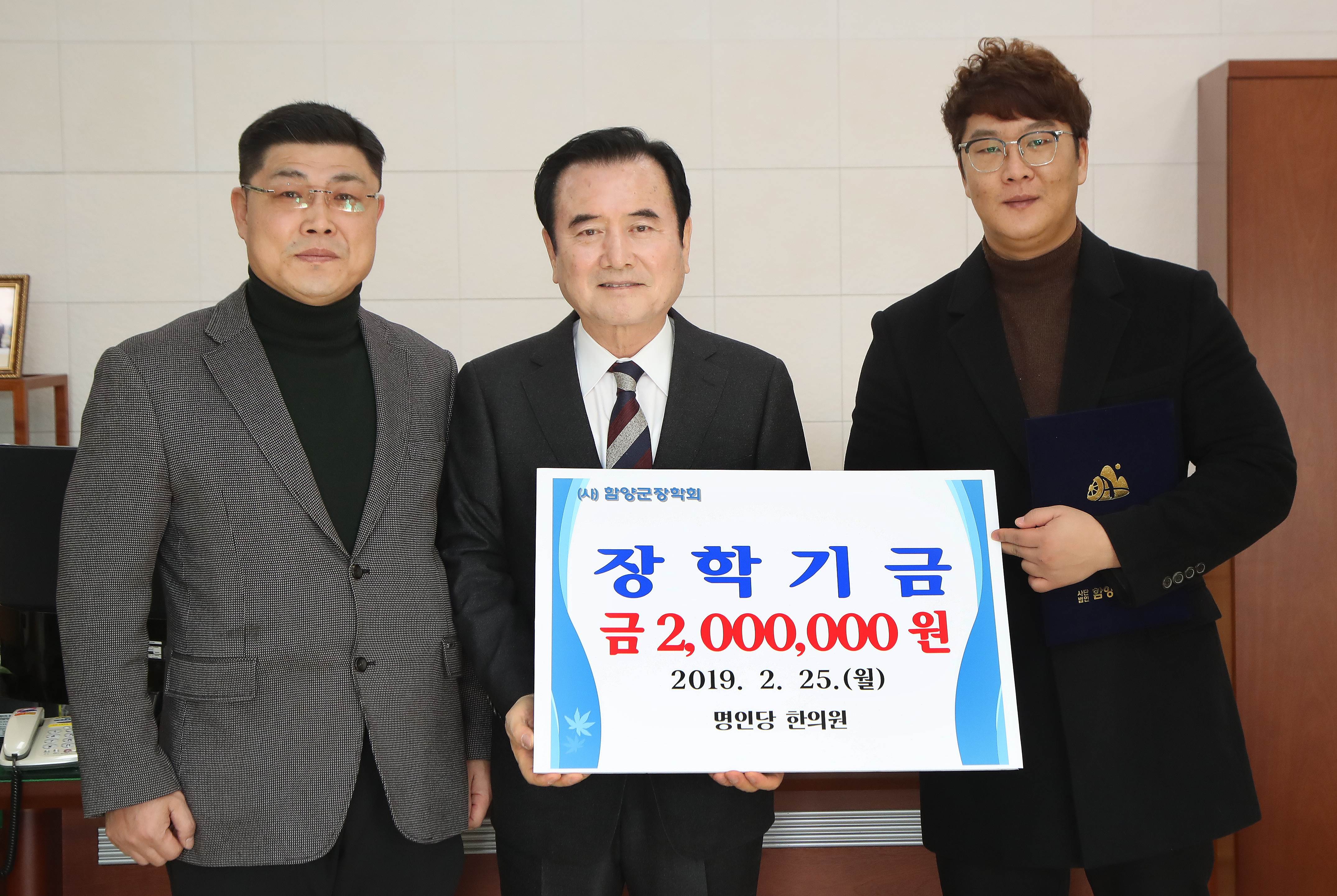함양군에 따르면 명인당한의원 관계자 등 2명이 지난달 25일 오전 함양군청을 찾아 (사)함양군장학회에 장학금 200만원을 전달했다.