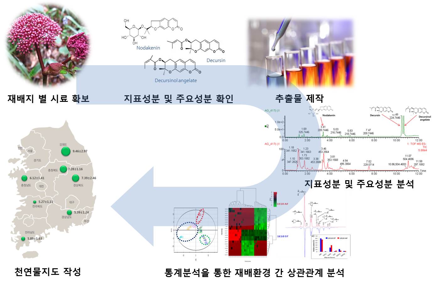 특히 천연물지도 작성 연구는 원료소재 단계에서부터 유용성분의 표준화를 위한 기준을 제시해 국내 약용자원 품질의 우수성을 입증함으로써 원료 소재 수입 대체 및 경쟁력 확보하고, 국내 시장에 머무르고 있는 천연물 소재를 글로벌 경쟁력을 갖춘 세계적인 수준으로 끌어올리는 데 매우 중요한 의미를 지닌다.