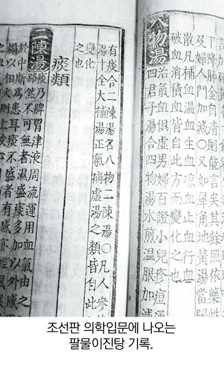 그리고 八物二陳湯의 처방에 대해서는 『醫學入門』 ‘八物湯’조문에서 “氣血이 모두 虛한 것을 치료한다. 남자, 부인의 百證과 小兒疹痘에 通用하니, 즉 四君子湯과 四物湯을 합한 것이다. 물에 끓여서 따뜻하게 복용한다. 가감하는 방법은 앞과 같다. 痰이 있으면 二陳湯을 합하니 八物二陳湯이라고 한다”고 게재돼 있다.