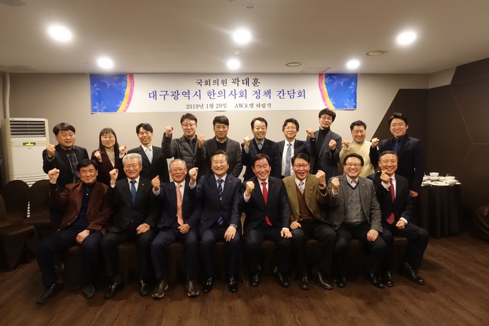 대구광역시한의사회(회장 최진만)는 지난 29일 AW호텔에서 관내 자유한국당 곽대훈 국회의원(대구 달서구갑)과 정책간담회를 개최, 지역사회 주민들의 건강증진을 위해 한의학이 기여할 수 있는 방안을 모색했다.