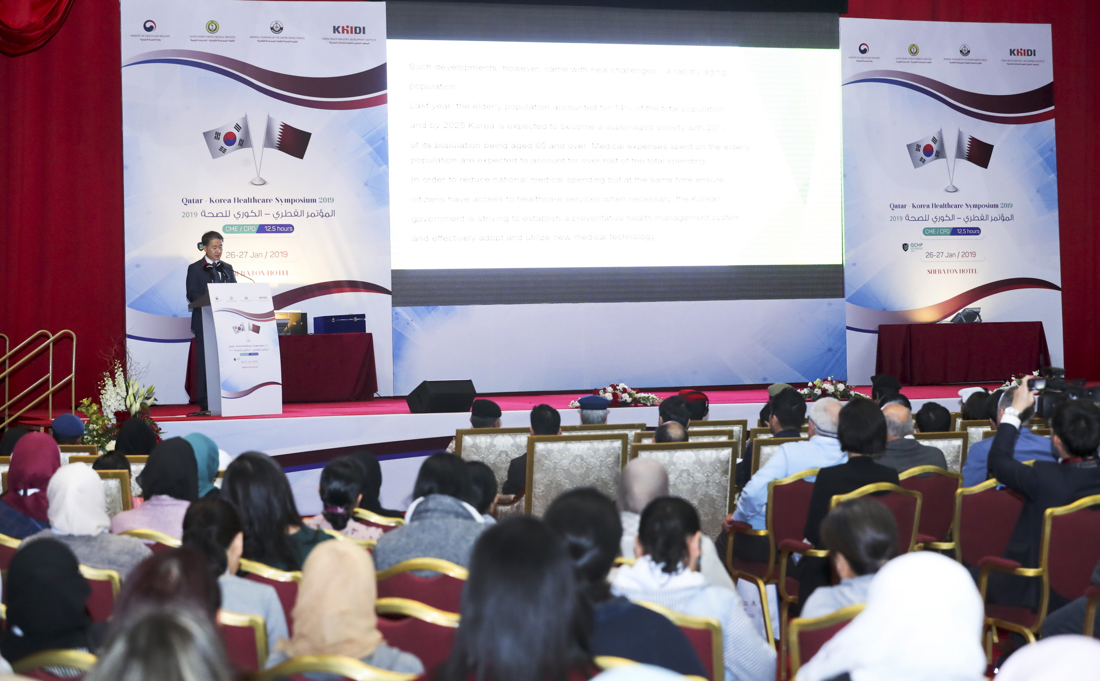 이번 심포지엄은 카타르 의료인이 필수적으로 이수해야하는 보수교육으로 인정돼 총 650여명의 카타르 의료인이 참여했으며 정형외과, 순환기내과, 통증의학, 한의약 등 7개의 진료과로 구성된 한국 의료팀이 카타르 의사(軍의무사령부 소속)와 협진 방식으로 현지 환자들을 진료하는 방문의사 프로그램(Visiting Doctors Program)도 지난 27일부터 3일간 진행해 큰 호응을 받았다.