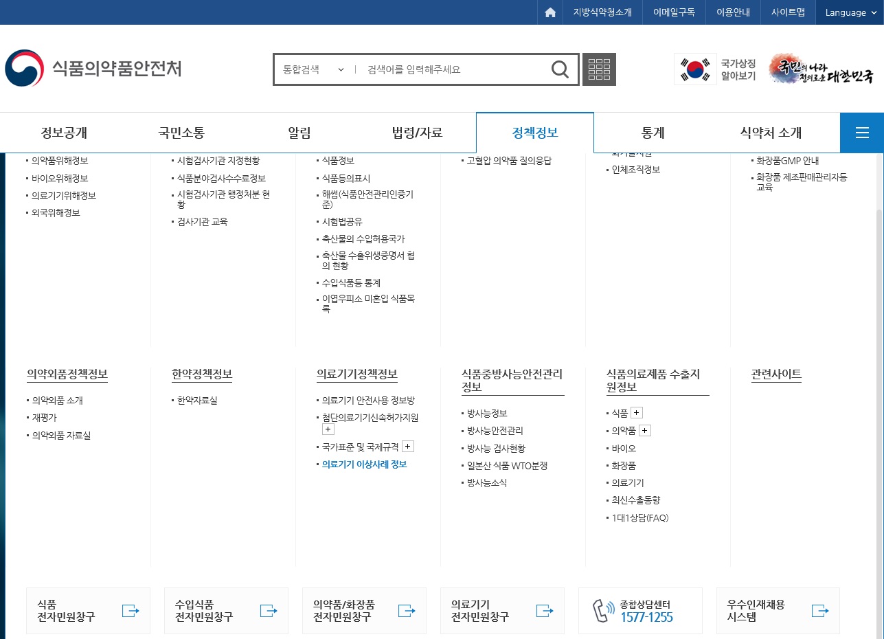 자세한 정보공개 내용은 홈페이지(www.mfds.go.kr)/정책정보/의료기기정책정보/의료기기 이상사례 정보에서 확인할 수 있다.
