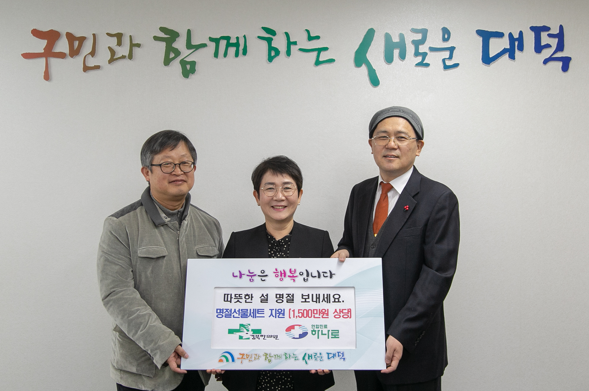 [한의신문=강환웅 기자] 경북한의원(원장 이승호)과 하나로클리닉의우회(대표원장 정연신)는 지난 16일 설 명절을 앞두고 어려운 이웃과 사회복지시설을 위해 써달라며, 1500만원 상당의 선물세트를 대덕구(구청장 박정현)에 전달했다.