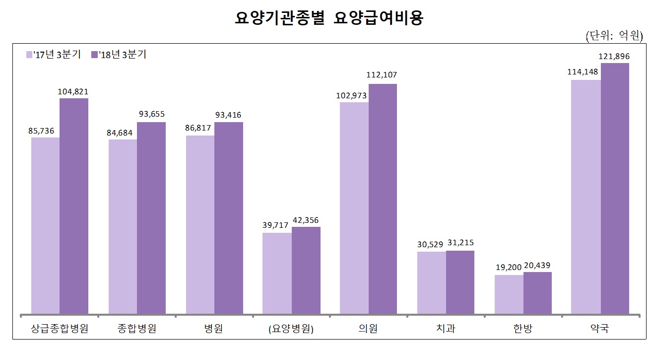 건강보험심사평가원, '2018년 3분기 진료비 통계지표' 공개
