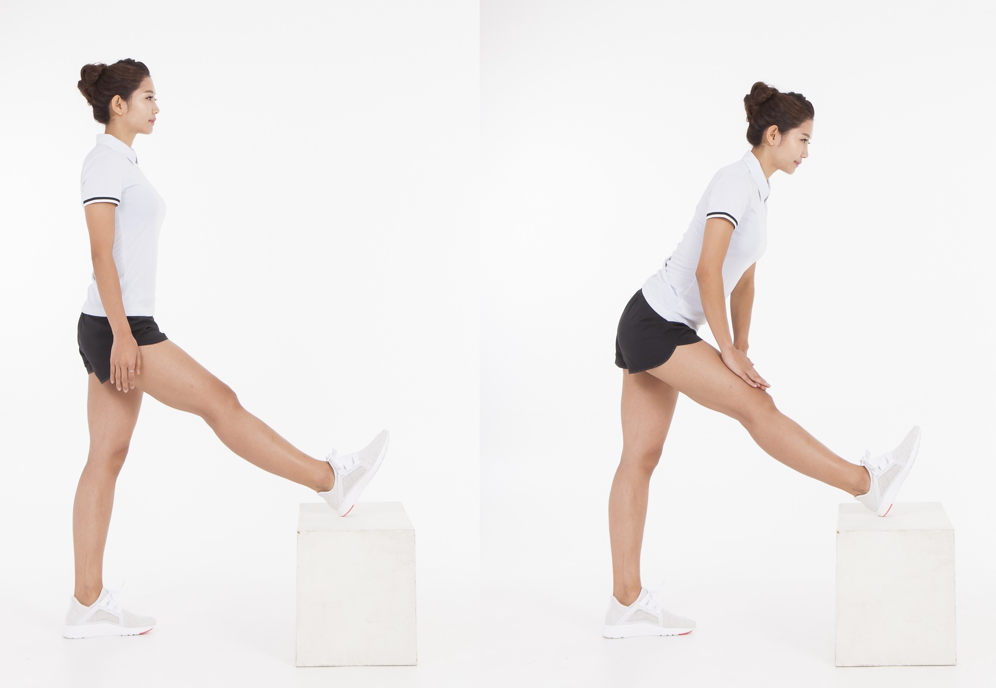 이럴 땐 '무릎 꾹꾹 스트레칭'이 추천된다. 방법은 매우 간단한데, 의자 위에 한 쪽 발을 얹고 두 손으로 무릎 관절 부분을 지그시 눌러주기만 하면 된다. 15초간 유지하고 발을 바꿔 같은 동작을 실시한다. 좌우 1세트로 2회 반복한다. 무릎 꾹꾹 스트레칭은 무릎 관절을 마사지 해주는 효과와 함께 다리 전체를 스트레칭 해줘 무릎 부상 예방에 적합하다.