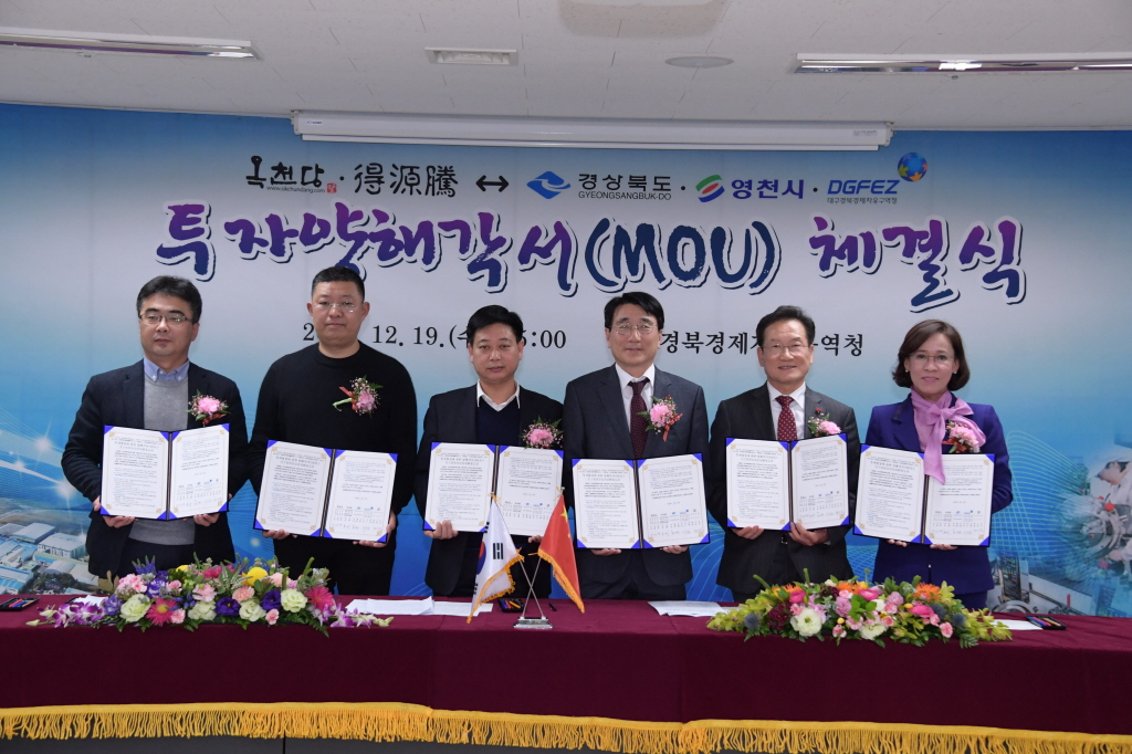 [한의신문=강환웅 기자] 영천시는 19일 대구경북경제자유구역청에서 경상북도·영천시·대구경북경제자유구역청 관계자들이 참석한 가운데 중국자본 유치를 위한 투자양해각서(MOU)를 체결했다.