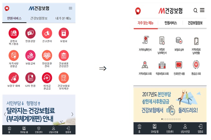 또한 모바일 앱 초기화면에 '자주 찾는 메뉴'를 배치해 메뉴 접근성을 높였으며, 화면을 좌·우로 밀어서 메뉴 이동이 가능하도록 하는 등 사용자 중심으로 디자인을 구성했다.