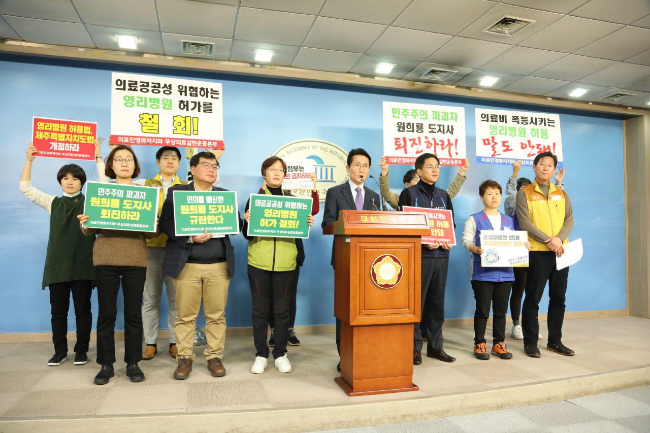 즉각적인 개원허가 철회 및 영리병원 막을 제도적 장치 마련 '촉구'