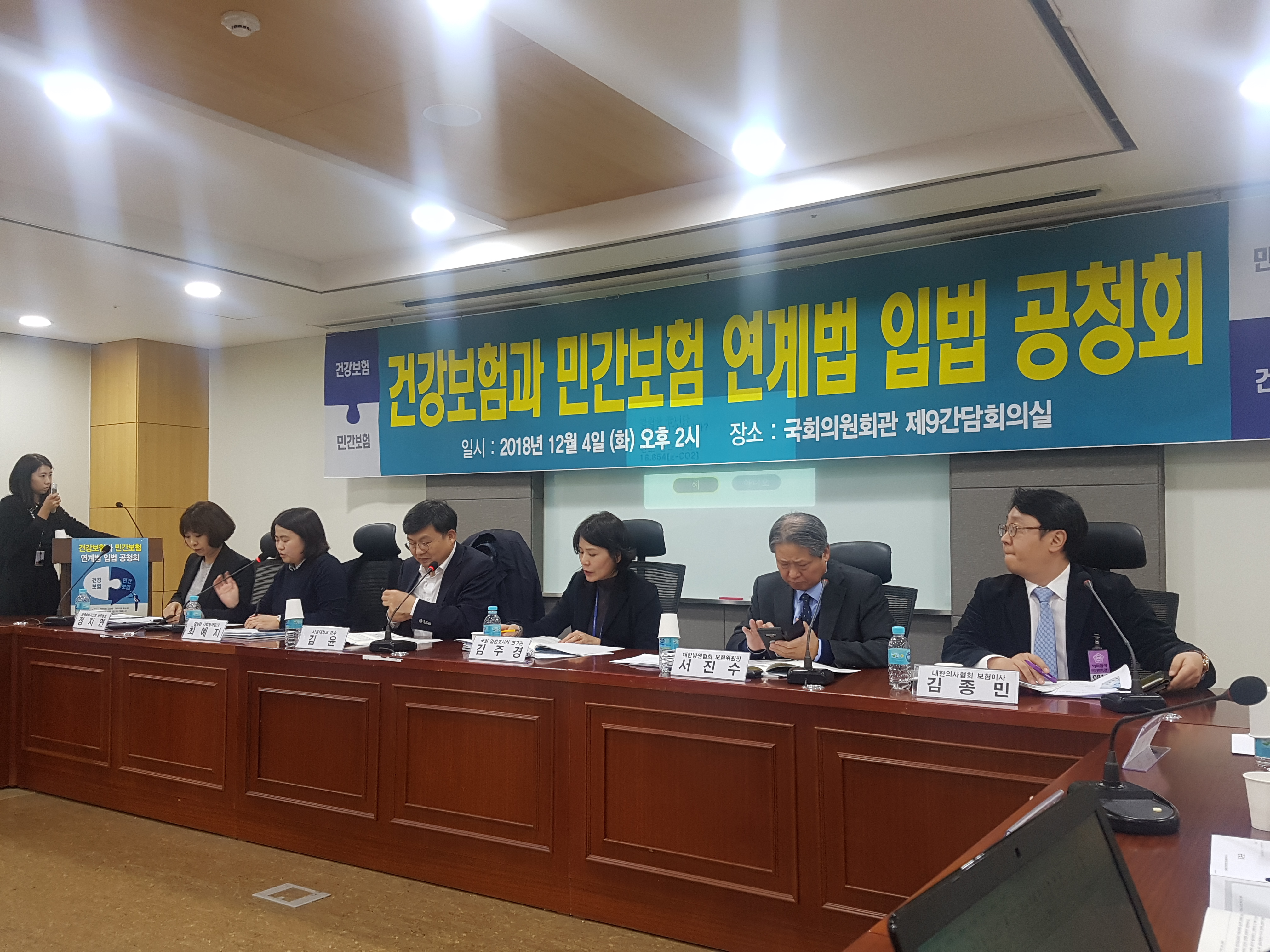 지난 4일 국회 보건복지위원회 소속 김상희, 윤소하 의원 주최로 의원회관에서 열린 ‘건강보험과 민간보험 연계법 입법 공청회’에서 전문가들은 해당 법안의 세부적 내용에는 조금씩 이견이 있기는 했으나 법안의 필요성 자체에는 대체적으로 공감했다.