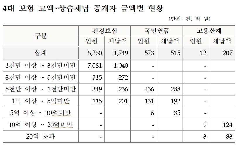 4대 사회보험료 고액·상습 체납자 8845명 인적사항 '공개'