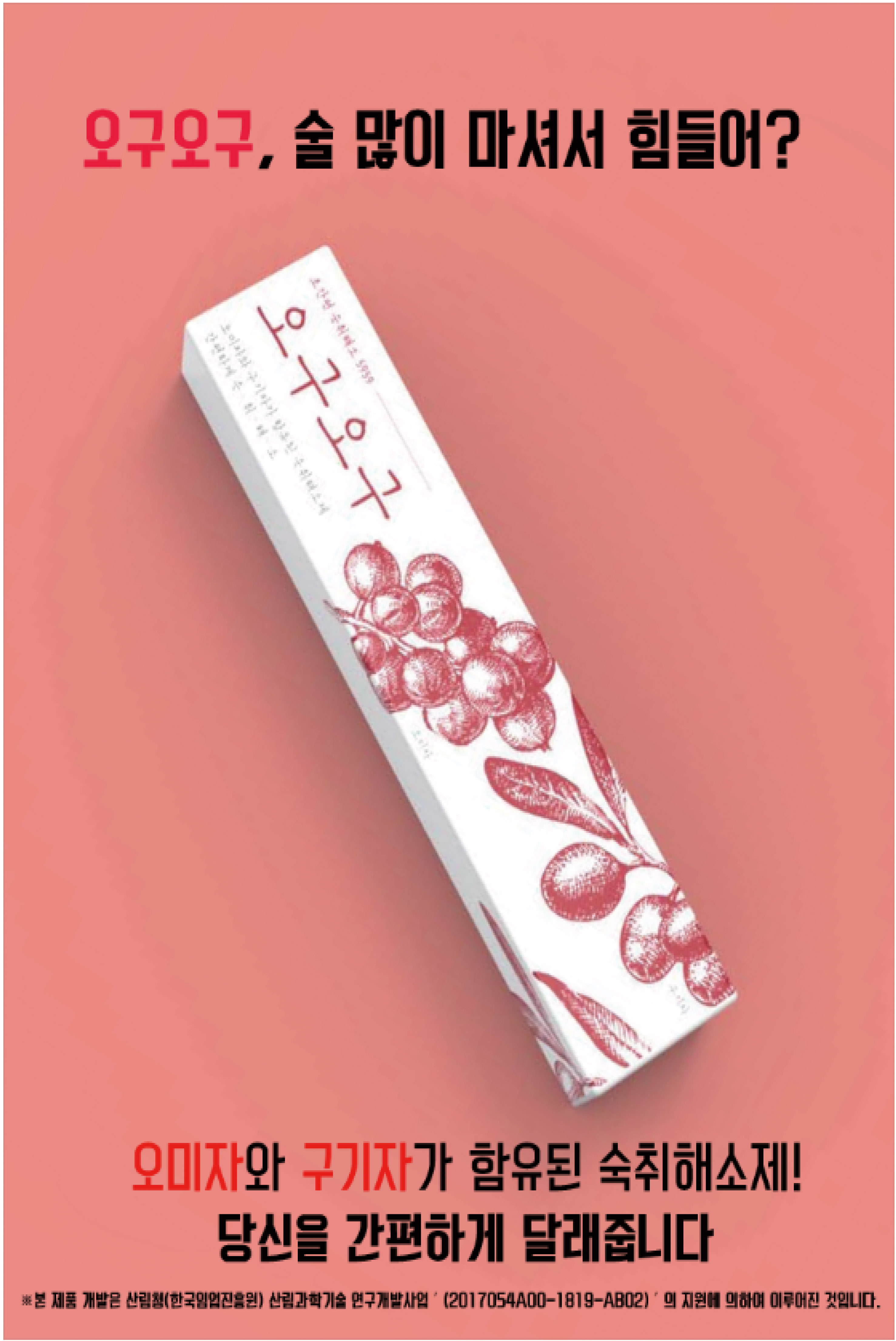 케미메디에 따르면 ‘오구오구’는 2017년도 산림청 융복합기반 임산업의 신산업화 기술개발사업인 ‘오미자와 구기자 소재의 포제 및 발효기술을 활용한 헬스케어 제품 개발’ 과제의 성과물로 개량된 발효와 포제 기술이 적용된 신제품이다.