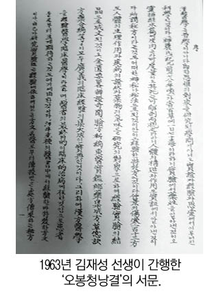 1963년 金在誠 先生(1907∼?)은 『五峰靑囊訣』이라는 醫書를 간행해 세상에 내놓는다. 이 책은 金在誠 先生이 임상을 하면서 효험이 있었던 경험처방들을 모아서 간행한 醫書다.