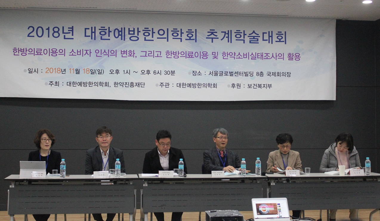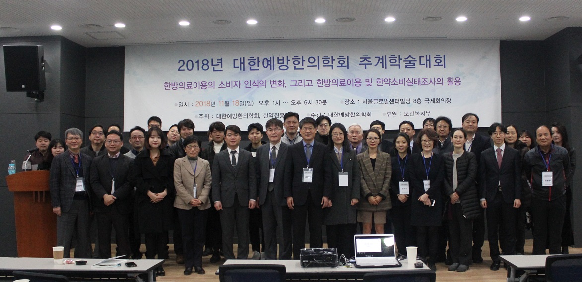 대한예방한의학회와 한약진흥재단은 지난 18일 서울글로벌센터빌딩 국제회의장에서 ‘한방의료 이용의 소비자 인식의 변화, 그리고 한방의료 이용 및 한약소비실태 조사의 활용’을 주제로 2018년 대한예방한의학회 추계학술대회를 개최했다.