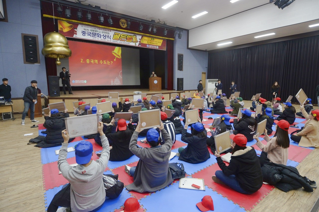 세명대공자학원이 주최한 이 골든벨은 중국의 역사와 문화를 알리기 위해 한의학과, 중국어학과, 항공서비스학과 등 다양한 학과 학생 70명이 참여한 가운데 진행됐다.