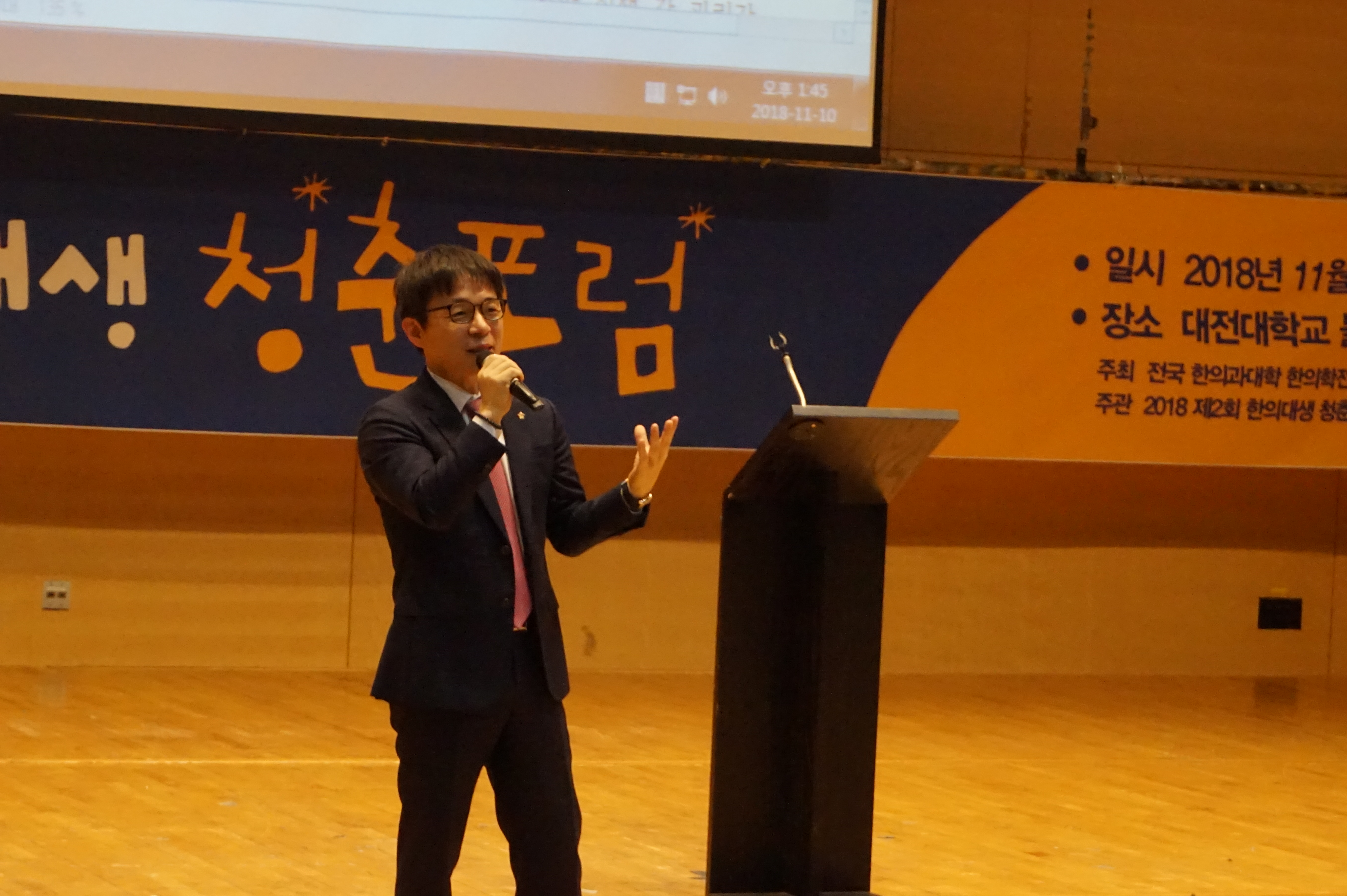 전체강연으로는 최혁용 대한한의사협회(이하 한의협) 회장이 ‘한의계 현황과 현대 한의사의 미래’를 주제로 발표했고, 선택강연 1에서는 △김태형 심리학자의 ‘자라고 있다, 잘하고 있다, 인간관계 속 자존감 지키기’ △최문석 한의협 부회장의 ‘변화하는 남북관계와 한의계의 미래’ △강은희 한국미혼모지원 네트워크 정책연구팀장의 ‘예비 의료인을 위한 젠더감수성 이야기’가, 선택강연 2에서는 △정희범 프리인턴 대표의 ‘한의사, 잘할 수 있을까? 젊은 한의사와의 공감토크’ △신상우 한국한의학교육평가원장의 ‘한의대 교육의 비전’ △김은섭 유엔그린여성한의원장의 ‘한의 임상 치료 어디까지? 난임치료를 중심으로’ △이승일 파워피티 대표의 ‘가두지마 너의 잠재력, 넓혀봐 너의 상상력’ 등의 순서로 진행됐다.