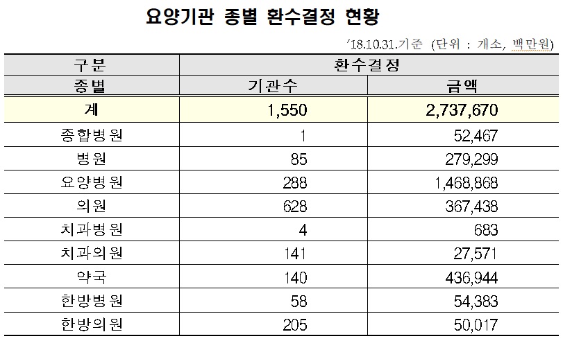 이들 요양기관이 불법개설기관으로 기소될 경우 건보공단은 요양기관 개설이후 지급한 요양급여비용(약 5812억 원) 전부를 환수하게 된다.