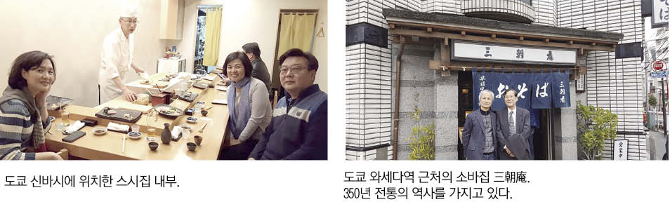 필자가 생활하던 와세다대학 본부 근처의 소바집 산죠안(三朝庵)은 일본에서 카레우동, 카레소바, 카츠동의 원조이기도 한데 350년 이상 역사를 간직한 곳이다. 카운터에서 ‘이랏샤이마세’를 외치며 손님을 맞이하는 퉁퉁한 주인장 할머니는 내가 갈 때마다 김영삼 전 대통령, 문선명 통일교 교주를 비롯한 한국의 유명 인사들이 많이 찾아 주었다고 자랑을 늘어놓으신다. 일본의 그 어느 곳보다 담백한 소바의 맛도 맛이거니와 암울했던 식민 시절, 이곳 2층에서 일본 유학생들이 모여 2.8 독립선언서 초안을 만든 곳이라는 의미가 더 해져 더 정이 가는지도 모르겠다.