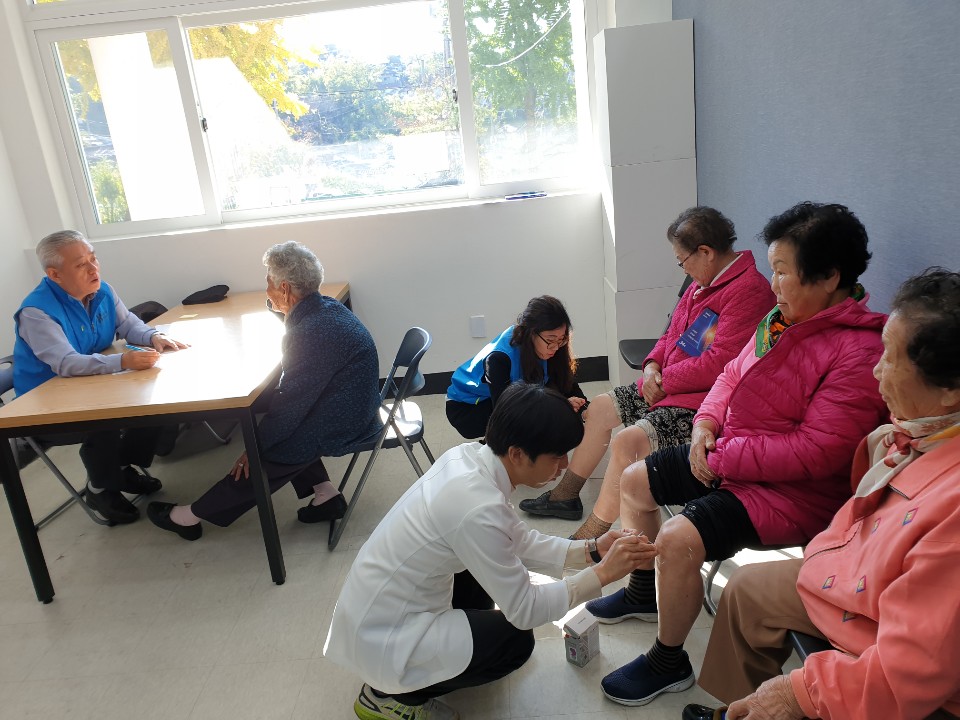 이날 봉사활동은 지역주민 70여명을 대상으로 △한·양방 진료 △혈압 측정 등 건강 검진 및 상담 △위문공연 및 손마사지 △후원물품 전달 등을 통해 이웃사랑과 나눔을 실천했다.