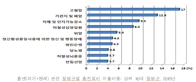 또한 질병발생위험도 및 각 건강위험요인의 유병률 지표를 이용해 산출한 인구기여위험도(Population Attributable Risk, PAR)를 총진료비, 공단부담금 원시자료에 적용하여 순수피해액을 산출했다고 밝혔다.