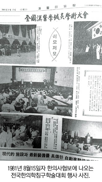 1981년 8월 13일과 14일 이틀간 부산광역시에서는 전국한의학침구학술제전이 거행됐다. 당시 전국에서 모인 1800여명의 한의사와 한의대생들이 침구학을 주제로 학술대회를 연 것이다. 대한한의사협회 차봉오 회장이 대회장, 정홍교 선생이 집행위원장, 경희대 최용태 교수가 운영위원장으로 활동했고, 단상에는 김무연 부산시장, 이헌기·안건일·김정수·김흥수·곽정출 등 국회의원, 이문재·강순수·왕학수 등 학계인사, 권오현 부산일보사장 등이 참석했다.