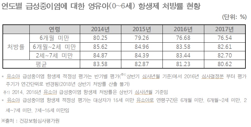 급성 중이염에 대한 영유아 항생제 처방률 '평균 80%'