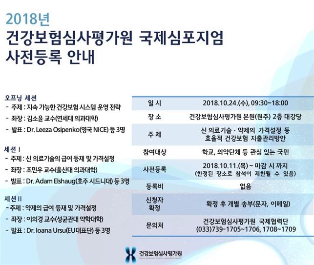 이번 국제심포지엄은 공통세션을 포함 3개의 주제별 세션으로 구성되며 영국 국립보건원(NICE), 필리핀 건강보험청장, 호주 시드니대 교수 등 국내외 관련 학계 및 산업계 관계자의 발표 및 토론으로 이뤄진다.
