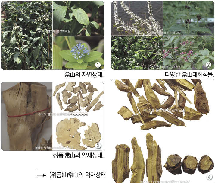 정품 한약재가 여러 가지 이유로 인해 원래의 정품을 포함하여 많은 종류의 대체품이 함께 사용되는 경우를 종종 볼 수 있다. 더구나 질병의 특수성과 이에 따른 높지 않은 사용빈도수를 가지고 있는 한약재의 경우에는 유별나게도 많은 대체품이 등장해 왔다. 한약재 중 대표적인 학질 치료제인 常山의 경우가 질병의 특수성을 포함하는 경우라고 말할 수 있을 것이다. 점차 시간이 지나면서 전혀 다른 한약재로 대체하게 됐고, 또한 이러한 상황이 오랫동안 지속되면서 자연스럽게 정품이 바뀌어지는 경우를 종종 볼 수 있다. 다시 말하면 해당 한약재가 자주 사용되지 않는 경우에는 이에 대한 확인작업이 이뤄질 기회가 적기 때문에 심각한 경우가 발생하기도 한다.