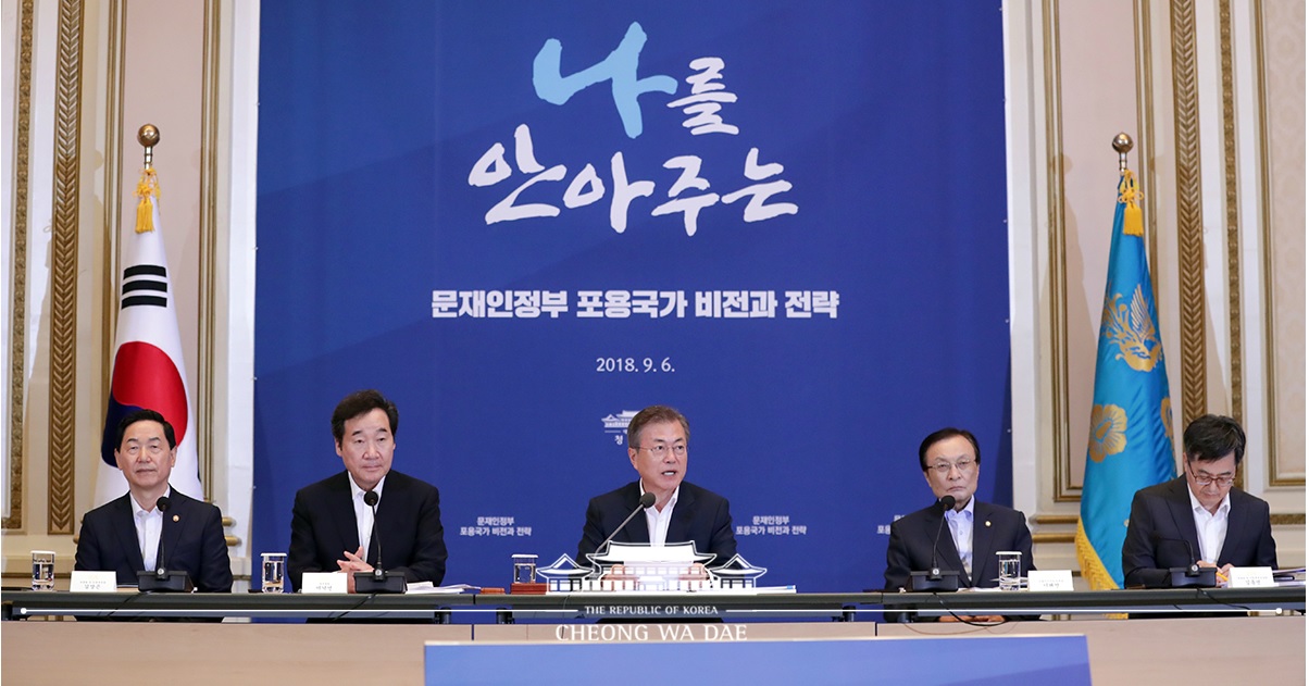 [한의신문=김대영 기자]정부는 대통령 직속 정책기획위원회와 함께 6일 역대 정부 최초의 사회분야 전략회의인 ‘포용국가전략회의’를 갖고 국가 비전으로 ‘모두를 위한 나라, 다함께 잘 사는 포용국가’를 제시하고 사회정책 3대 비전과 9대 전략을 발표했다.