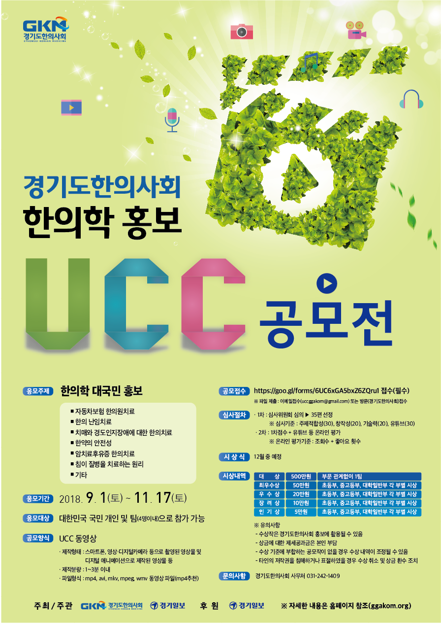[한의신문=민보영 기자] 경기도한의사회가 한의학 대국민 홍보와 다양한 한의학 홍보 콘텐츠 개발을 위해 '2018 제1회 경기도한의사회 한의학홍보 UCC 공모전'을 개최한다.