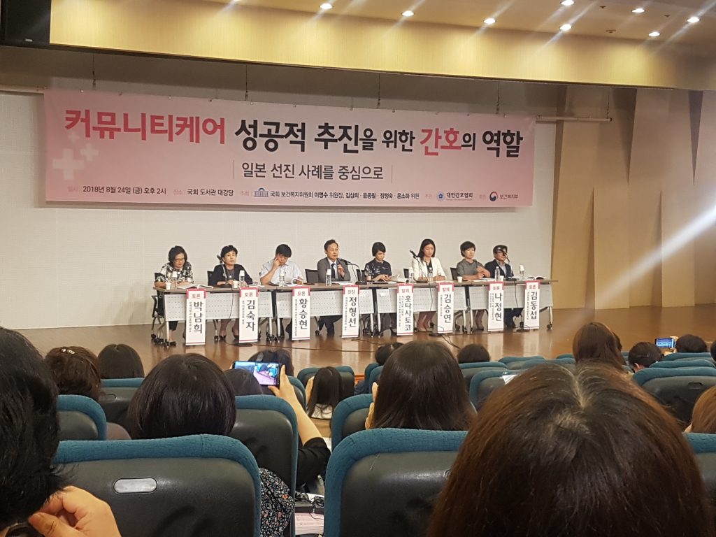지난 24일 국회도서관 대강당에서 국회 보건복지위원회 이명수 위원장과 김상희 더불어민주당 의원이 주최하고 대한간호협회(이하 간협) 주관으로 열린 ‘커뮤니티케어 성공적 추진을 위한 간호의 역할-일본 선진 사례를 중심으로’ 정책토론회에서 참석자들은 지역사회 내 복지시설과 재가요양시설, 의료기관간 네트워크를 강화하고 이를 위해 간호사의 역할 증대가 중요하다고 입을 모았다.