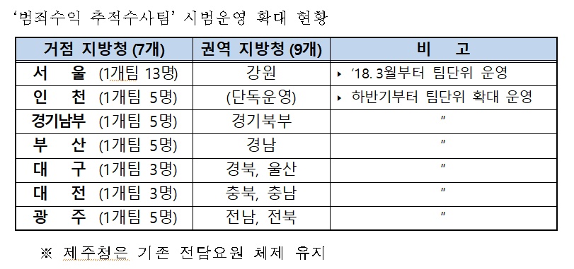한편 범죄수익 추적수사팀은 올 한해 시범운영을 거쳐 미비점 등을 보완한 후 추가 확대 시행 등을 추진할 예정이다.