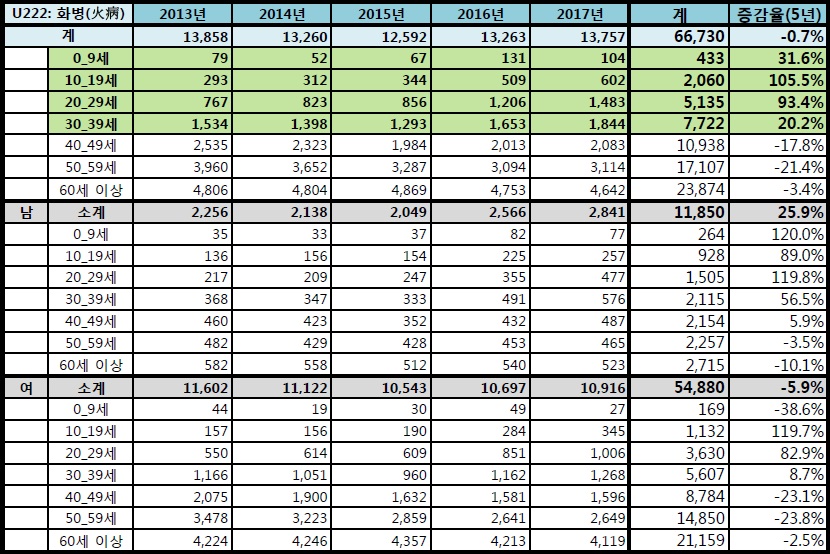2013년 293명이던 10대 화병 환자는 2017년 602명으로 105%가 증가했고 20대 환자는 2013년 767명에서 2017년 1483명으로 두 배 가까이(93.4%↑) 증가했다.