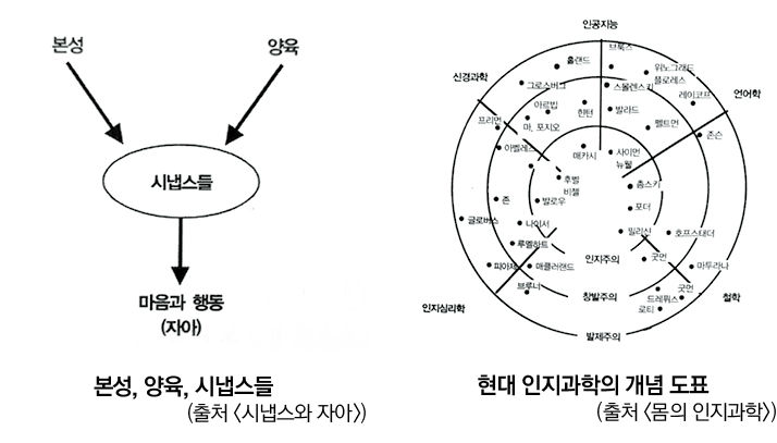 이 시스템 안에 특별히 자아라는 독자적 개념이 머물 자리가 없는 것이다. 그의 제자 프란시스코 바렐라는 에반 톰슨과 함께 서양 철학과 동양의 불교 사상을 인지과학으로 융합한 ‘몸의 인지과학’을 저술했다. 그의 주제는 몸이 마음의 인지기능에 영향을 미친다는 신체화된 인지이론이다.
