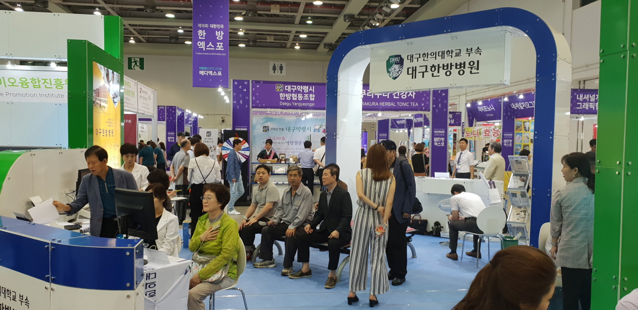 3.산학협력을통해생산된화장품전시대구한의대학교 부속 대구한방병원에서 마련한 ‘한방의료 체험’ 부스에는 행사 첫날에만 500여명의 관람객이 몰려와 체성분 분석, 스트레스 검사, 혈관노화도 검사 등의 한의진료와 검사 결과에 대한 전문 상담을 받았다.