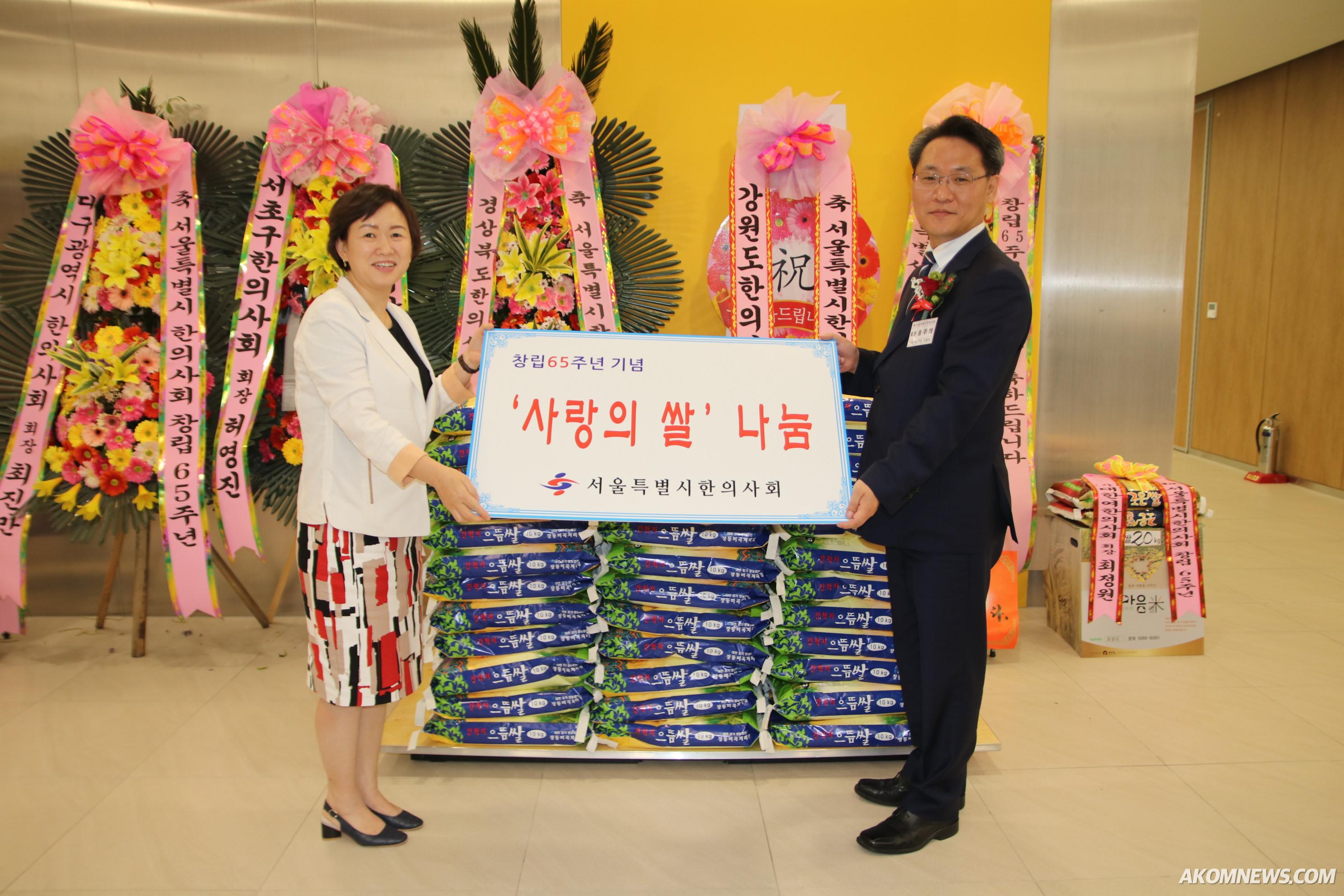 2부행사에서 축하공연을 마친 서울시한의사회는 이날 행사에서 화환 대신 받은 쌀 100여포를 탈북청소년대안학교인 미래소망스쿨에 기증해 의미를 더했다.